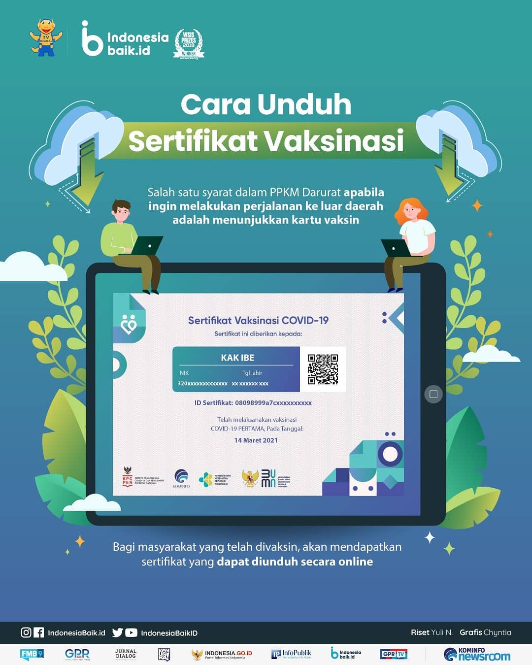Sertifikat vaksinasi dapat diunduh melalui laman pedulilindungi.id. Sebab, ada data pribadi sensitif, seperti nomor ktp. Gimana cara lihat sertifikat vaksin covid 19 sedangkan aku gak punya laptop atau pc?. Sertifikat vaksin digital akan diunduh dan tersimpan. Masyarakat dapat mendownload sertifikat vaksinasi di laman pedulilindungi.id.